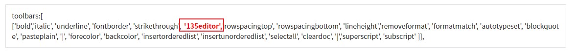 31在ueditor.config.js中toolbars项里增加一个135editor菜单项