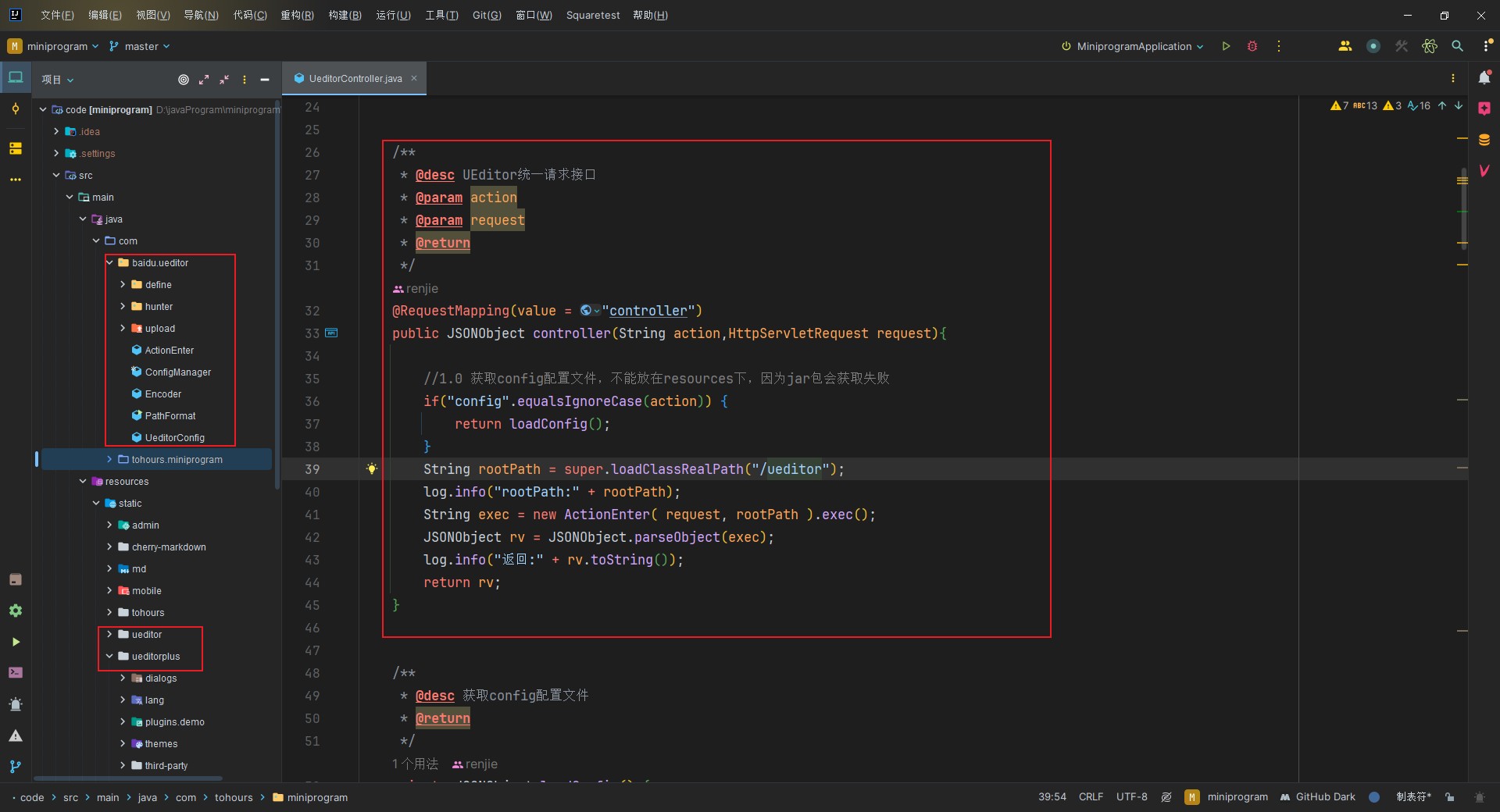 1 | 需要实现原本ueditor demo中的jsp的接口,下面是入口的地址,详情代码联系作者。 |